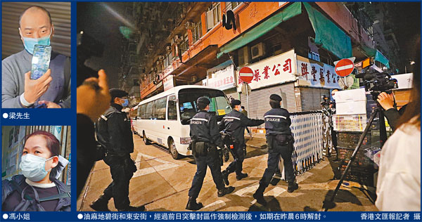 (香港文匯報記者 成祖明)一直飽受新冠肺炎疫情困擾的油麻地碧街和東安街,經過前日突擊封區作強制檢測後,如期在昨晨6時解封。家園終擺脫「疫區」標籤,商戶及居民笑逐顏開。有居民直言,附近大廈接連出現確診個案,令居民人心惶惶,是次強檢令他們放下心頭大石,並大讚政府今次行動神速,居民在睡夢中已度過禁足令,昨日如常上班,影響極輕微,更令大家感到安心,「老闆都安心畀我返工。」