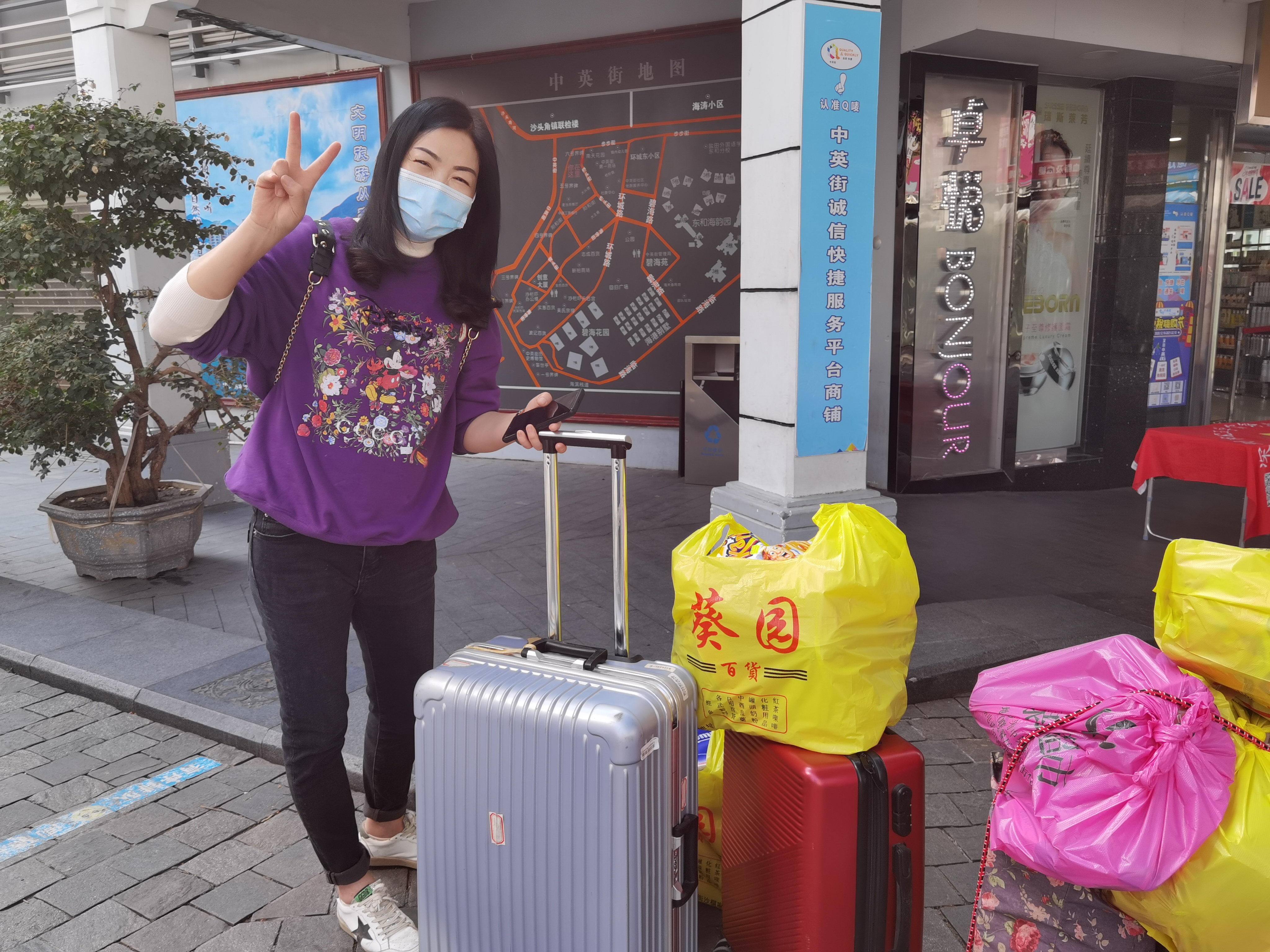中英街素有「購物天堂」之稱,有近百間店舖,匯聚了卓悅、華港商場、優免薈等知名連鎖店、大商場、免稅店,還有實惠百貨、波記百貨等中英街老字號百貨商店,化妝品、酒水、保健品、日用品等一應俱全,能夠同時滿足不同年齡、性別、喜好的購物者,是「血拚」的聖地。由於疫情影響,中英街成了唯一一個可以不用隔離,就能直接購買到香港商品的關口,自6月8日恢復通關以來,日人流量不斷增長,自1月以來,日均旅客量更達4-5千人次。