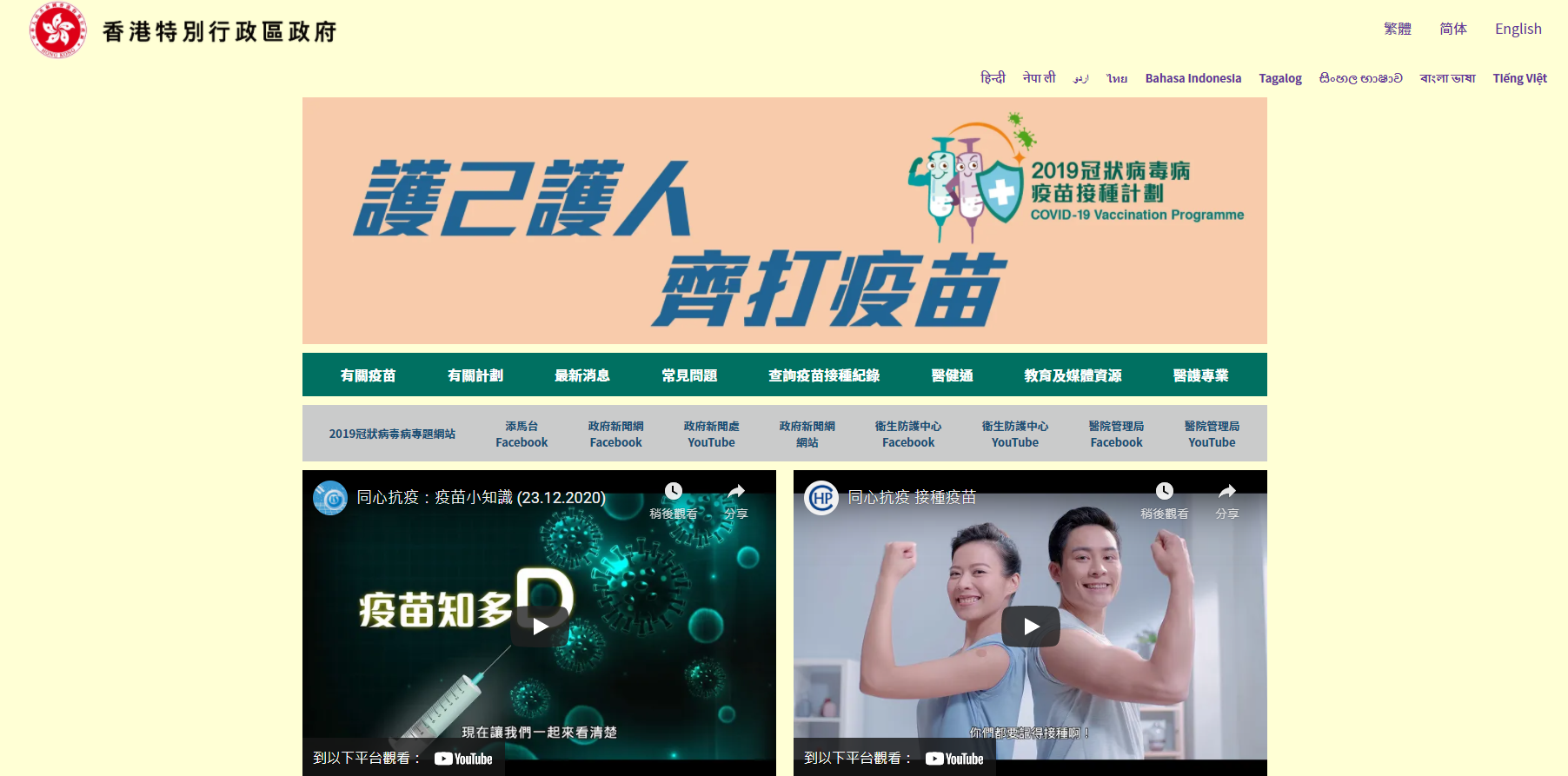 專題網站以文字、資訊圖表和多媒體形式,就政府採購的新冠疫苗以及疫苗接種計劃發放準確和第一手的資訊,並澄清不實信息,讓市民對有關事宜有正確的認識。政府亦會推出短片清楚解釋網上預約的程序,以及在社區疫苗接種中心接種疫苗所需注意的事項。