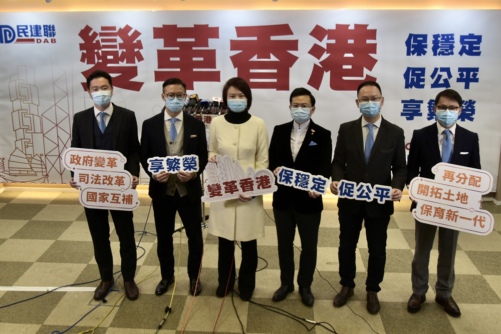民建聯主席李慧琼及五位副主席張國鈞、陳勇、陳克勤、周浩鼎、陳學鋒昨日共同出席記者會,介紹「變革香港」建議的具體內容。