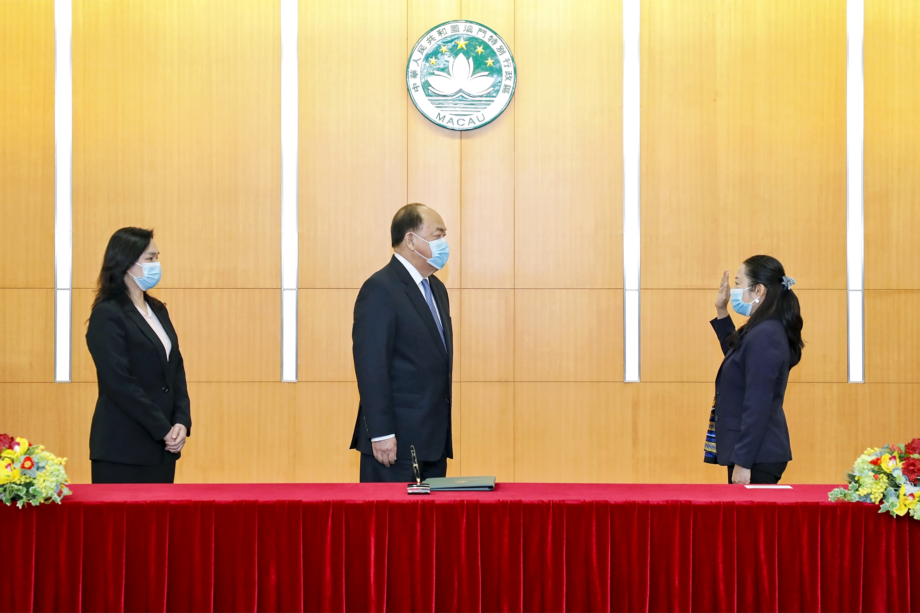 同日,澳門政府總部事務局亦舉行了主管就職宣誓儀式,並由許麗芳主任監誓,劉軍勵局長及李月梅副局長見證。