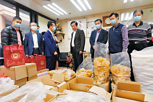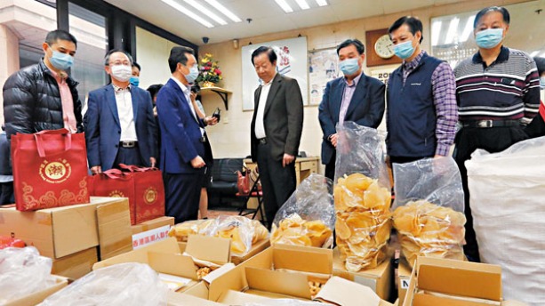 香港區潮人聯會不少成員扎根上環海味街數十載,經營多間老字號海味店,該會在傳統農曆新年前舉辦「齊抗疫 送溫暖 過大年」活動,走訪上環海味街多間商舖,向會員派送防疫物資,同時了解大家在疫情下的經營環境。該會會長胡池指,香港疫情未止,內地旅客大幅減少,令零售業經營非常艱難,冀社會能響應政府的疫苗接種計劃,讓香港盡快打勝這場「疫」戰,令香港經濟回復正常。