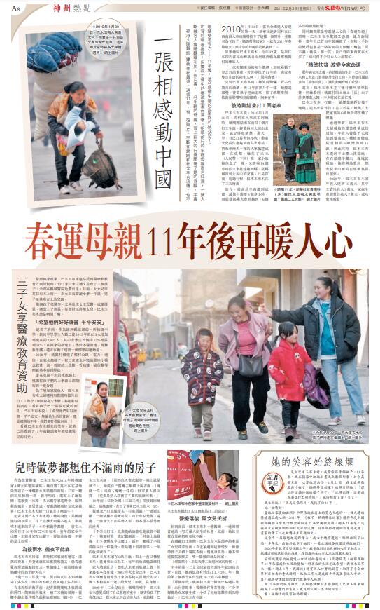 周科翻開那張曾震撼人心的「春運母親」照時,巴木玉布木驚訝又感慨。她告訴周科,當年自己背包中裝滿被子、衣物,手拎的雙肩包裏是一路需要的方便麵、麵包、尿不濕。她說,那一次,自己背的東西實在太多了,也引得不少好心人上前幫忙。
