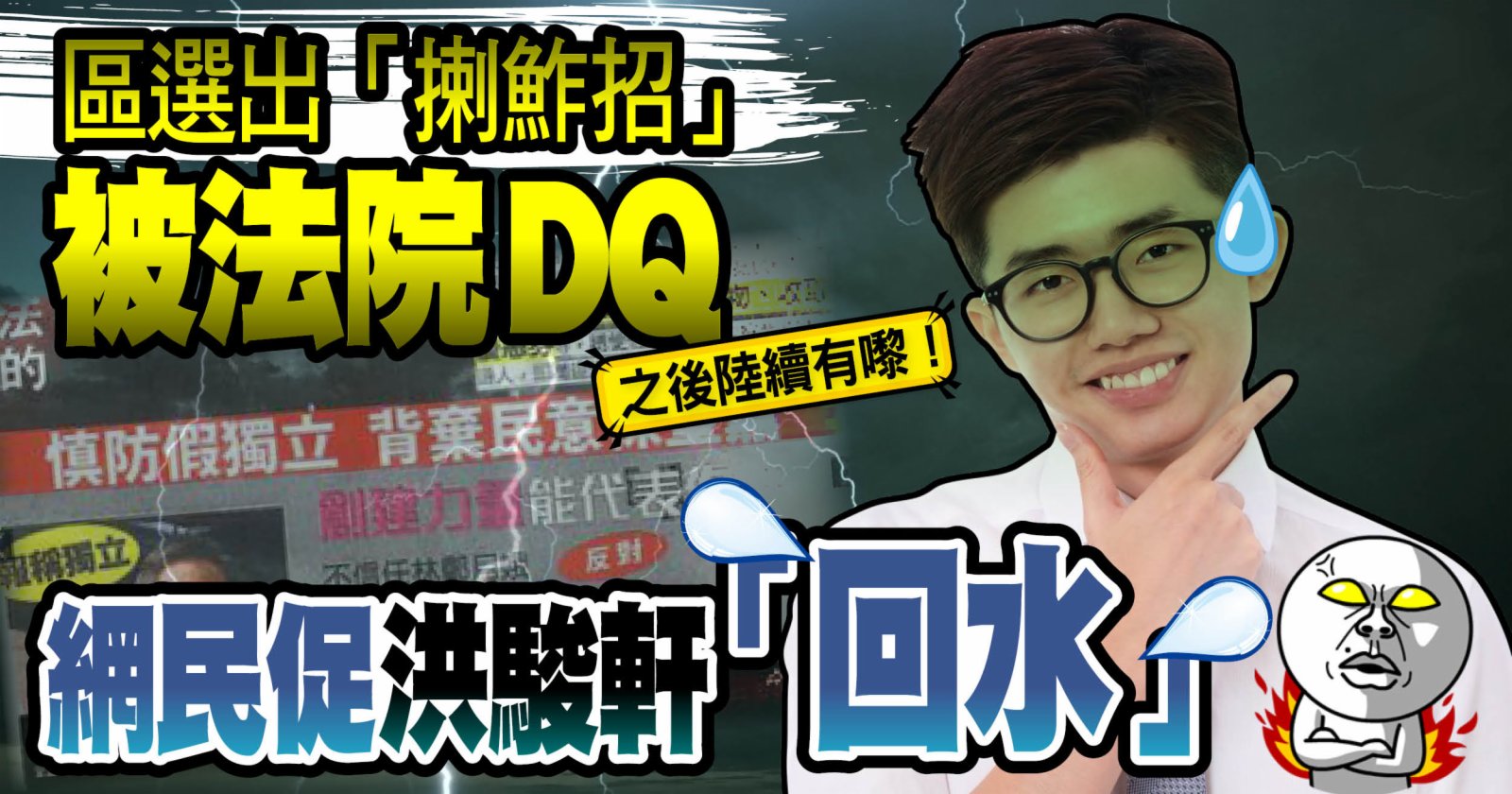 大公文匯全媒體報道,民主黨觀塘區議員洪駿軒涉在2019年區議會選舉宣傳中抹黑對手,被高院裁定並非妥為當選,即時失去議員資格兼輸堂費,成為本屆區議會首名被DQ的議員,完全是咎由自取,不少網民就有請小鳳姐「恭喜佢!失業!」咁話,並期待執法機構再接再厲,DQ更多破壞選舉公正的攬炒派。網民更指洪是靠非法手段當選,他收取的議員薪津同樣不合法,應立即「回水」。