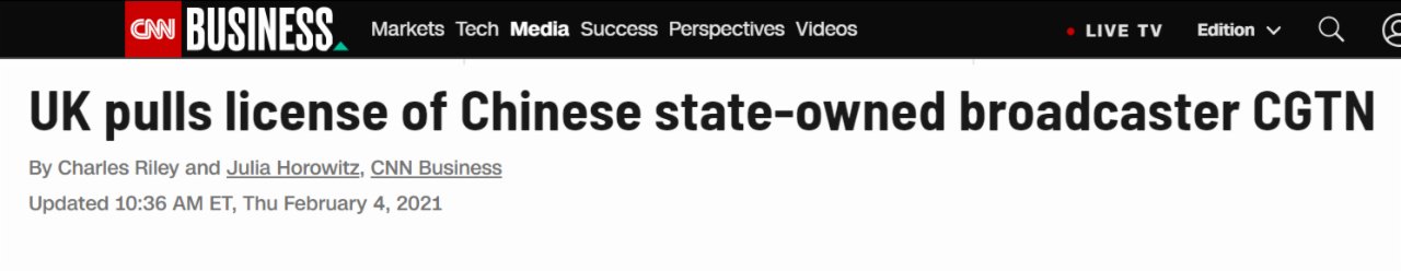 欲加之罪,何患無辭。此前,CGTN英語頻道也曾多次被英國監管機構扣以莫須有罪名。CNN報道稱,OFCOM還曾裁定CGTN在報道香港暴亂時違反英國對於「新聞公正性」的標準。