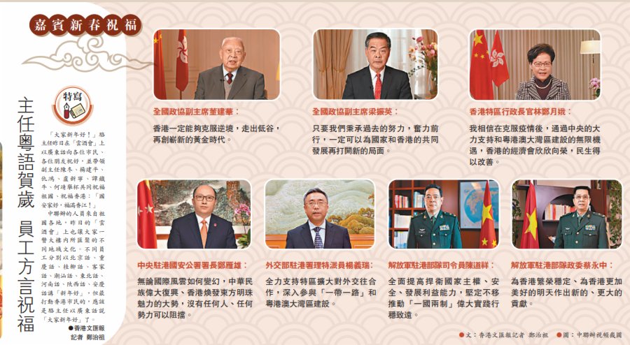 昨天的中聯辦「雲賀歲」亦體現了「新人事、新作風、新氣象」。除了駱惠寧主任以粵語「大家新年好」致以祝福外,中聯辦員工還以各自的家鄉方言,如客家話、潮汕話、重慶話、河南話、東北話、柳桂話、安慶話等向香港市民送上新春祝福。