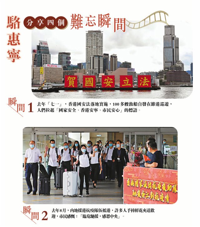 從「家」到「心」,到今天的「賀」,這正是一年來香港社會「變」與「不變」的幾個關鍵詞。香港國安法的頒布實施遏制了黑暴的肆虐,香港走上了撥亂反正、由亂及治的正軌;政府市民齊心抗疫,在中央的全力支持下,正朝着清零控疫的目標邁進。這一年,香港市民深深體會到了「國家好,香港一定會好」這個歷史的大邏輯,「香港這個家」亦呈現了近年來罕有的風清氣正。國安家好,福滿香江,相信如駱惠寧去年指出的:只要「醫無私、警無畏、民齊心,政者、醫者、兵者,能者扛鼎逆行;商客、鄰家、百姓,義者戮力同心」,就一定能夠早日迎來戰勝疫情的那一天,香港這個家也一定能夠經受住各種風雨考驗,再放光芒!
