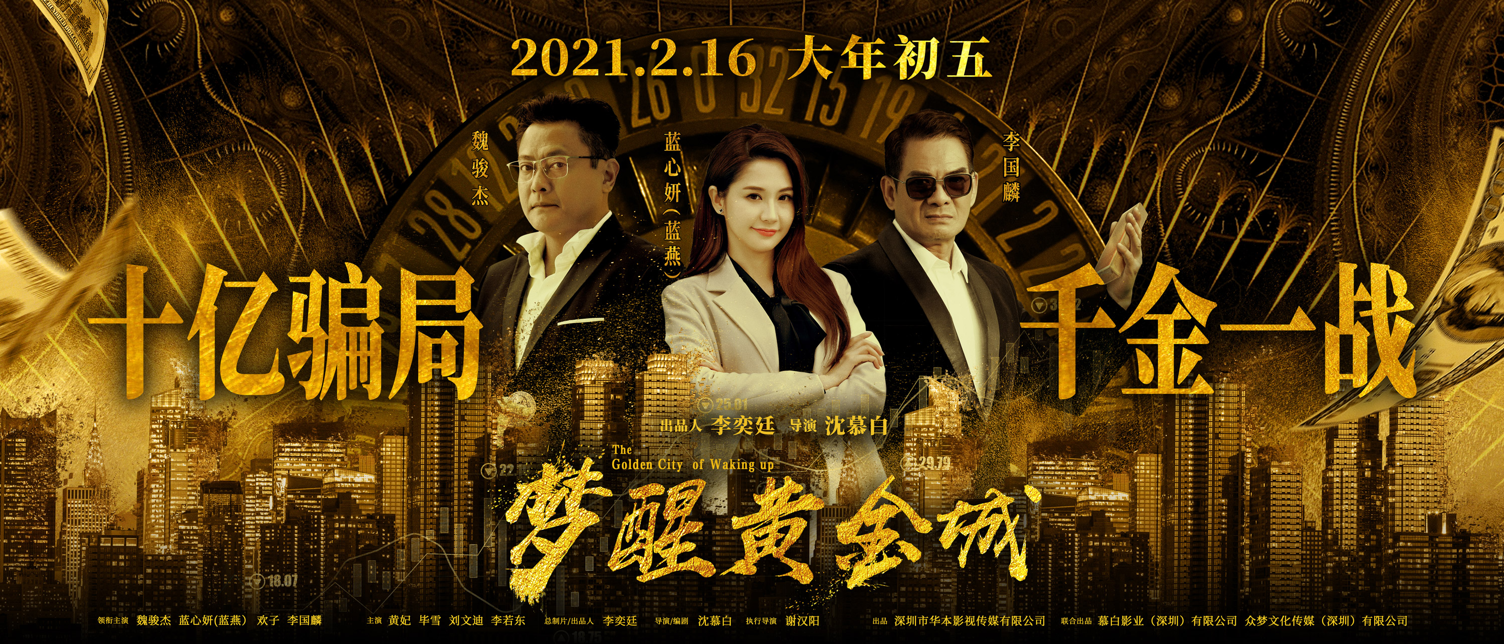 《夢醒黃金城》將於2月16日大年初五全國春節檔上映,「以商戰題材的電影迎接初五的財神爺,非常適合。」出品人李奕廷介紹。《夢醒黃金城》講述了年輕企業家馬三木被競爭對手設局被騙陷入了投資騙局欠下巨額債務後,發現競爭對手盯上他的科技成果,他承擔責任、洗心革面,奮力與對手周旋,決定振興民族科技產業。劇中主角馬三木艱辛創業,想要打造一個屬於自己國家,民族的新興科技產業,也反映出一代人為了社會國家發展而付出的不為人知的心血。