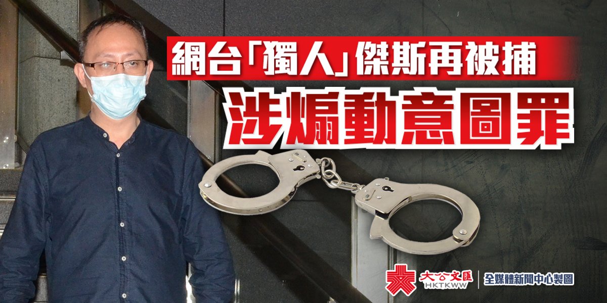 大公文匯全媒體報道,網台「D100」節目主持人傑斯(真名尹耀昇),去年2月發起所謂的籌款計劃,支援逃往台灣的黑暴分子,於去年11月與妻子及女助手被警方國安處拘捕,涉嫌洗黑錢及資助分裂國家罪行。警方國安處人員經進一步調查後,今日再度拘捕傑斯,涉嫌「作出具煽動意圖的作為」罪。