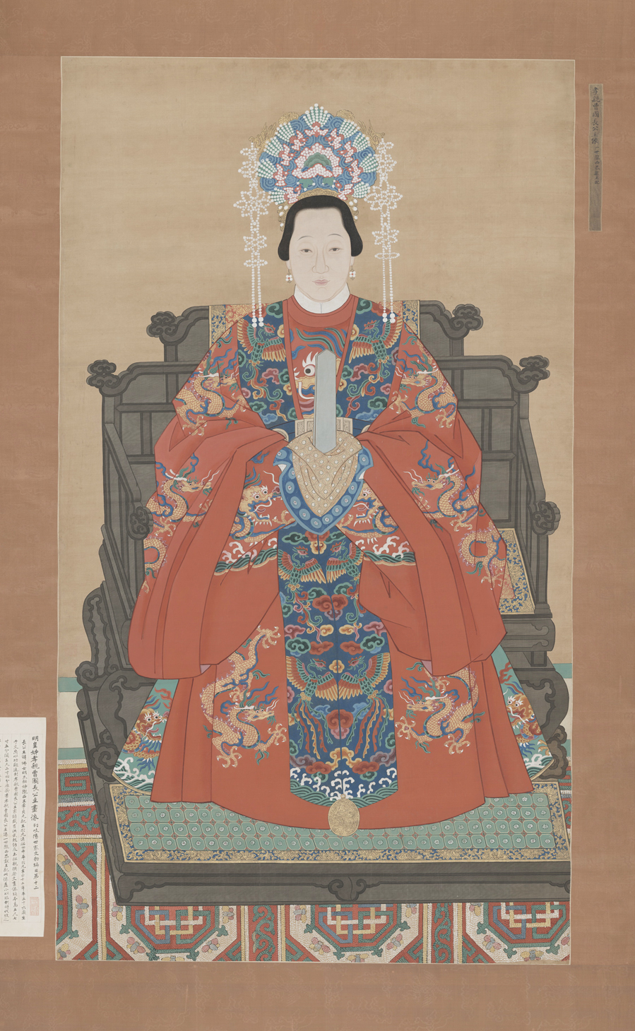 展品中有數十件國博館藏一級品,包含極少展出的宋《中興四將圖》、明益莊王妃首飾、定陵出土首飾,清《皇朝禮器圖》、康熙帝朝服等。其中5件明代岐陽王世家文物(《隴西恭獻王李貞像》《孝親曹國長公主像》《贈南京錦衣衛指揮使李佑像》《太保襲臨淮侯李言恭像》和《臨淮侯夫人史氏像》)在古代服飾史研究領域具有較高知名度,均為首次展出。