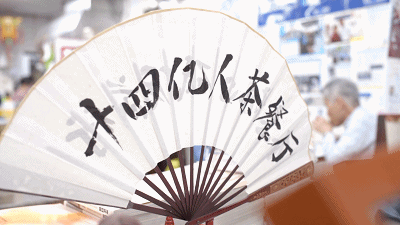 一進餐廳,迎面就看到一把展開的摺扇,上面寫着「十四億人茶餐廳」幾個字格外醒目。