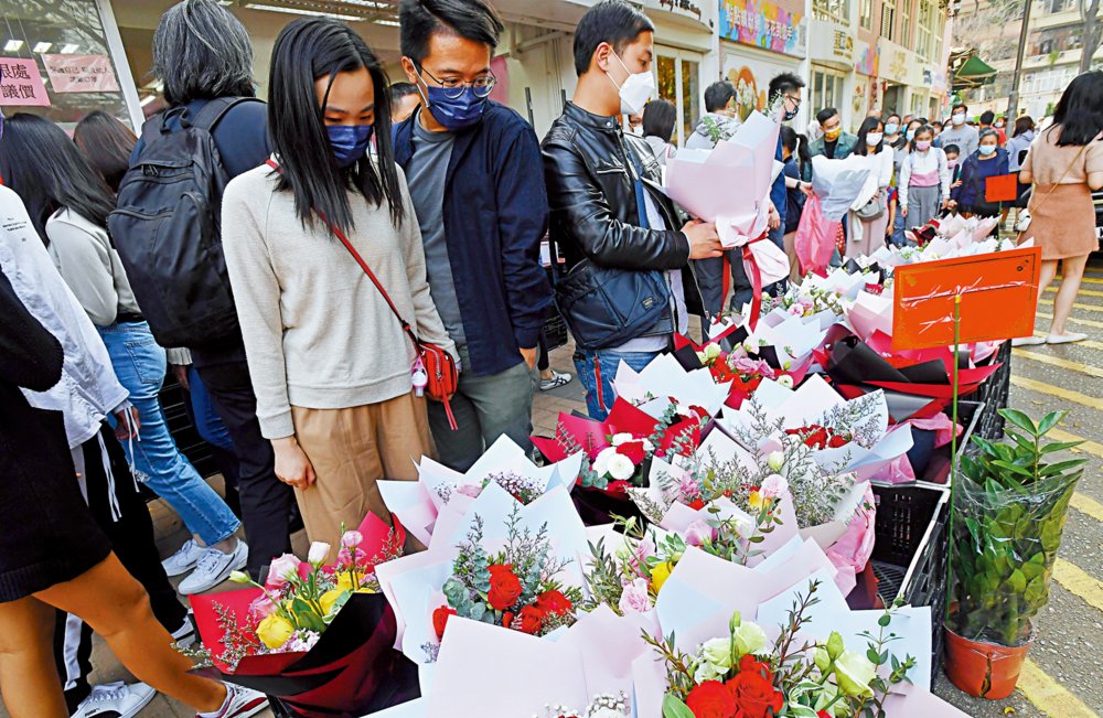 在旺角花墟,王先生昨日中午行遍一間間花店,精心挑選花束送給太太。他說過往每年的情人節,二人幾乎都出外旅遊度假慶祝,浪漫而有氣氛。