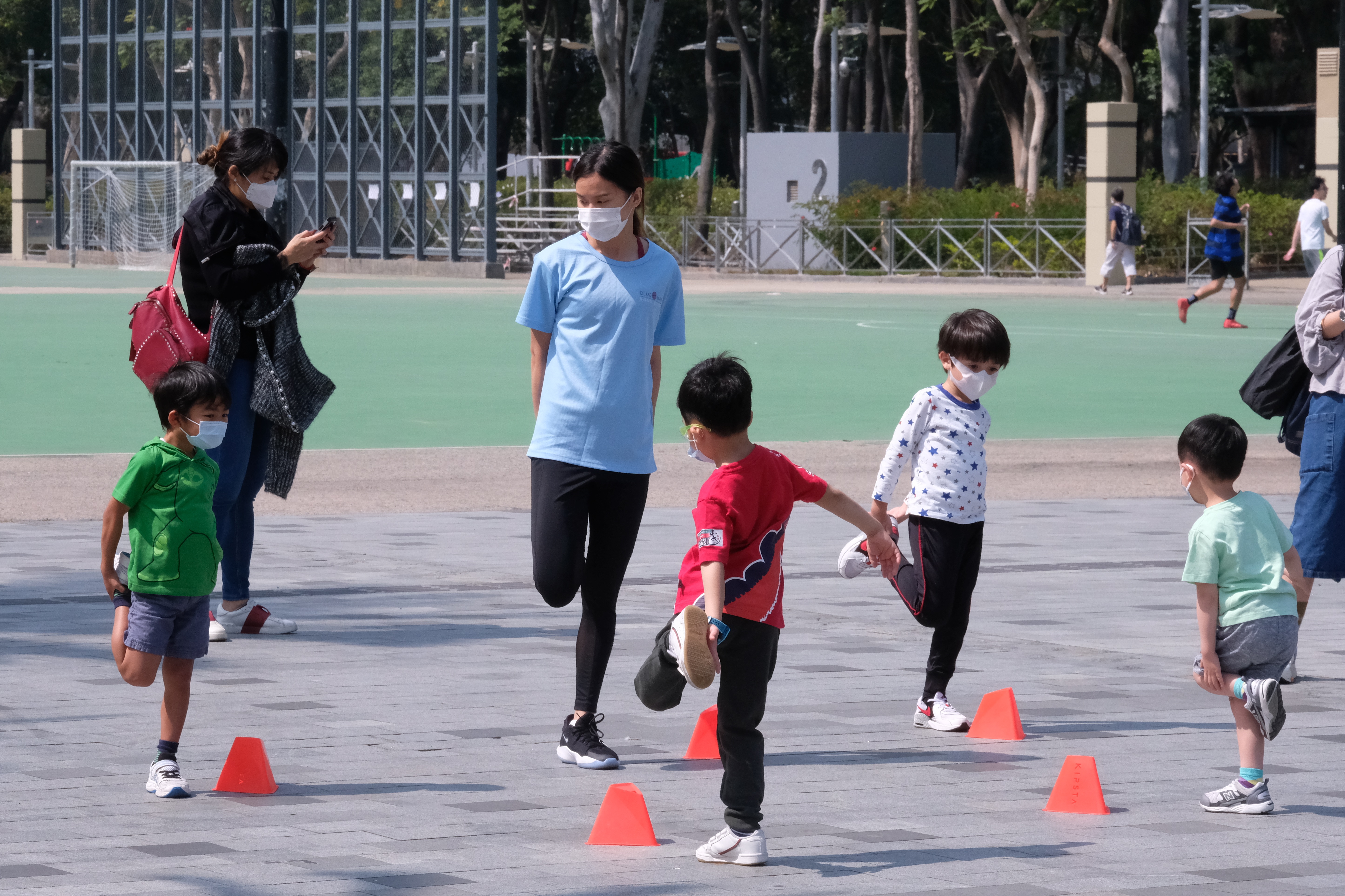 政府放寬社交距離措施,康文署更多康樂及文化場地於昨日相繼開放,今日(20日),不少市民前往維園踢波或打籃球,還有家長攜帶小朋友一齊參加體育活動,市民恢復運動,活力滿滿。(大公文匯全媒體記者麥鈞傑攝)