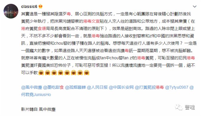 這就是之前的香港現狀,「港獨」暴徒張貼「港獨」黑暴文宣是「光明正大」,而愛國市民清理那些違法的「港獨」文宣倒像是違法犯罪一樣。