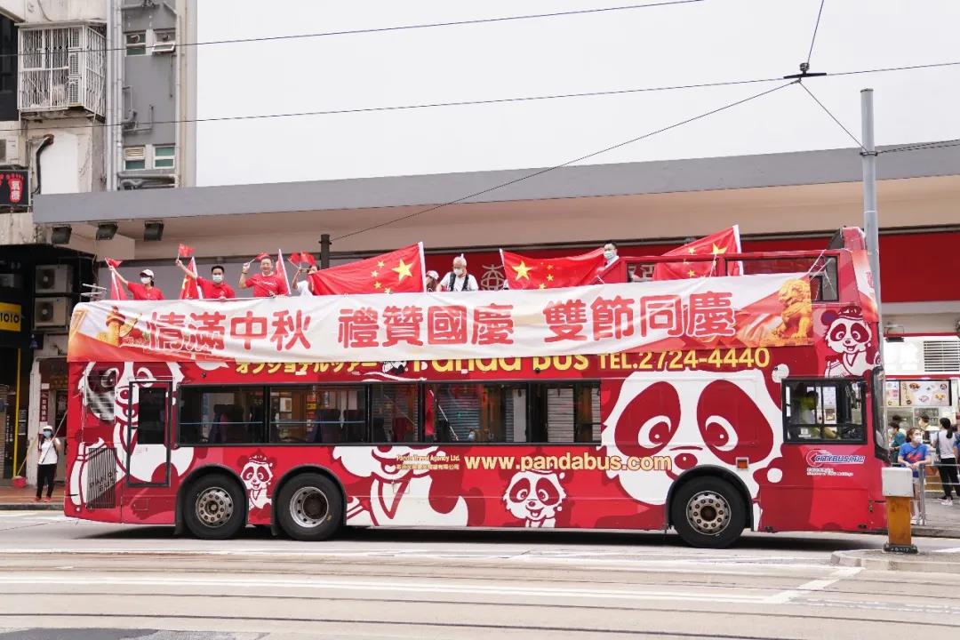 國慶節當天,眾多的香港市民走上大街、揮舞國旗為祖國慶生。有市民還自費在香港的大街上插上國旗,讓香港充滿了愛國主義和節日的喜慶氣氛。