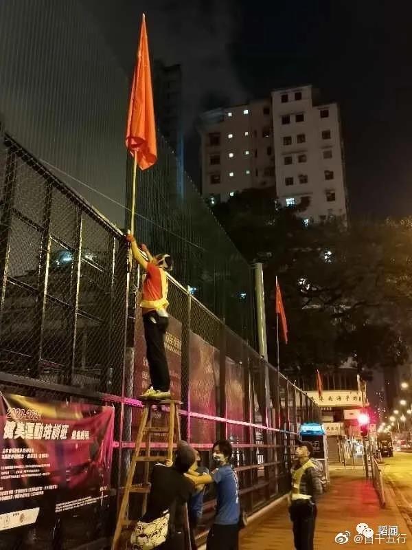 上面就是「港獨」分子用以「慶功」的社交平台截圖,愛國市民懸掛的「支持國安立法」的條幅在很短的時間內,就被香港食環署的人給清理乾淨了!