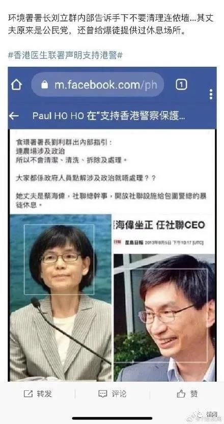 有人曾批食環署署長劉利群的丈夫是社聯總幹事蔡海偉,而蔡海偉曾多次參與亂港活動,劉利群有必要向公眾解釋相關事宜。