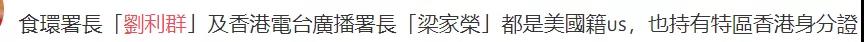 有港人稱食環署長劉利群與港台廣播處長梁家榮一樣,都是美國國籍,同時持有香港身份證。