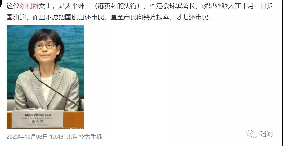 國慶節當天拔國旗,食環署長劉利群也不太介意宣告她的「黃屍」身份了!