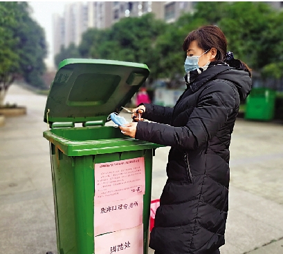 •存在發熱、咳嗽、咳痰、打噴嚏症狀或接觸過此類人群的人,建議將廢棄口罩用酒精噴霧等消毒後裝在袋子裏密封,再投放到「口罩專用」垃圾桶裏。