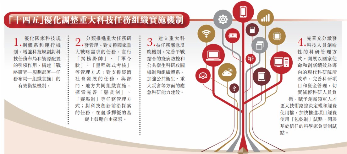 「十四五」規劃建議提出,將實施一批具有前瞻性、戰略性的國家重大科技項目,瞄準人工智能、量子信息、集成電路、生命健康等前沿領域。上述項目顯示,中國致力於雙管齊下,解決「卡脖子」「心腹之患」問題。