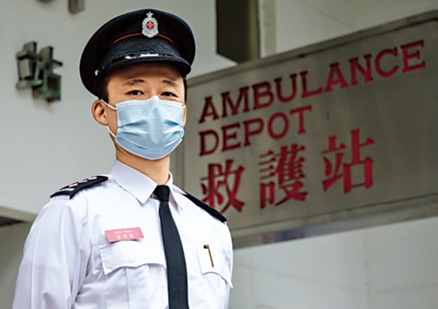 文駿於2014年加入消防處,現時駐守西灣河救護站。疫下感受最深刻的記憶,是一次日常救護車執勤時,接載了一名疑似確診婦女,他說:「當時這位女士情緒好激動,上到救護車問『點解要車我走呀?』又話自己無事,唔願意合作,擾攘咗一輪。我哋從佢嘅說話,估計佢對疫症唔太理解,唔明白我哋點解要送走佢。」