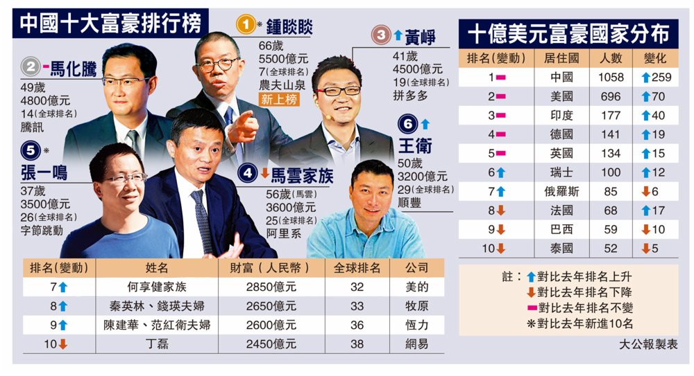 中國最大的調味料製造商海天味業是上榜人數最多的企業,高達14人進入富豪榜,失去中國首富寶座的馬雲,旗下阿里系也有13人進榜。