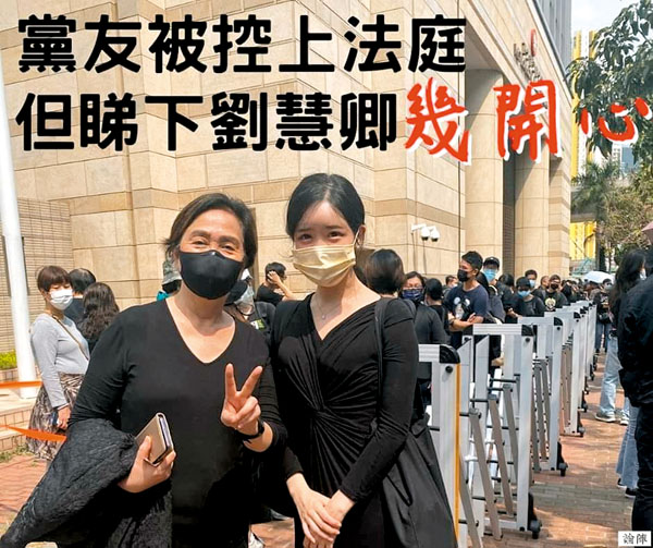 (香港文匯報 記者 倪思言)攬炒派47人被控「串謀顛覆國家政權罪」,連續數日開庭審訊。唔少攬炒派支持者都去咗西九裁判法院外聲援,宣稱要同班攬炒派「齊上齊落」,而民主黨前主席劉慧卿亦都有出現㗎,不過佢嘅心情似乎唔錯,笑容滿面咁同人合照,仲要比個V字手勢,如此唔體恤班同路人嘅心情,唔知佢啲黨友知道佢嘅表現會做乜反應,不過網民就好理解佢呢啲自然而然嘅情感流露,話佢成功甩身,梗係開心啦。