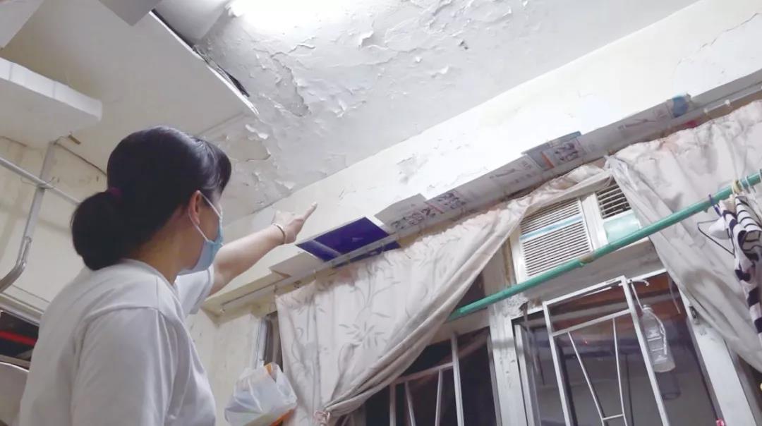 由於漏水問題嚴重,牆身常年腐蝕,床邊、桌子邊、廚房還有洗手間都是污漬斑斑,發出陣陣霉味。可就算是如此惡劣的居住環境,蔡女士一家三口仍然一住就是五、六年,原因只有一個,租金。「這間劏房的租金是每月3,800港幣,加上水電費約為4,500港幣,對於一房一廳來說真的很便宜,因為漏水所以業主才一直沒有加租。但是所有漏水的地方(牆)都會脫皮,曾經也考慮過搬家,聯繫了兩家中介,要麼租金更貴,要麼就是天台屋,更加不行。」