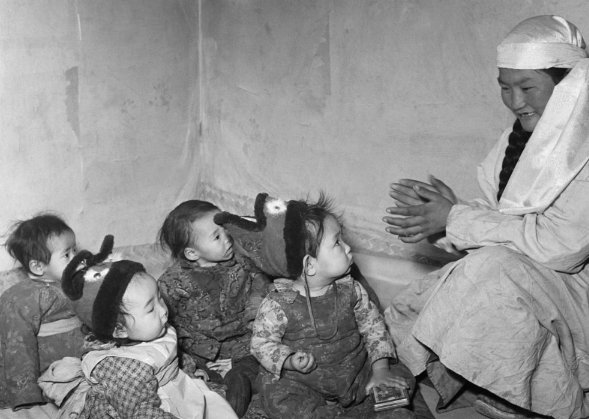 當「上海孤兒」被送到草原時,正在託兒所工作的都貴瑪只有19歲。被招進四子王旗保健站後,她便承擔起照顧28名孤兒的任務。做飯、洗衣、煮牛奶、教語言、和孩子們一起玩、哄孩子們入睡……年輕的未婚姑娘和28個幼小的孩子組成了大家庭,她沒讓一個孩子挨餓、受凍,直到這些孩子全部被牧民領養。