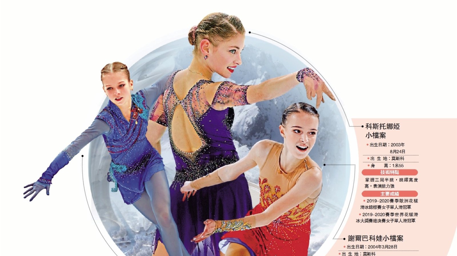 平昌冬奧後,原以為奧運冠軍扎吉托娃將稱霸世界女子花滑界,但出人意料的是,隨着科斯托娜婭、謝爾巴科娃、特魯索娃3位當時不滿16歲的小將升入成年組,扎吉托娃在全國比賽中已經很難進入前三名。2019-2020賽季的世界花滑大獎賽上,3位俄羅斯小蘿莉包攬6站分站賽的冠軍,以及總決賽的前三,成為北京冬奧上的奪金熱門人選。
