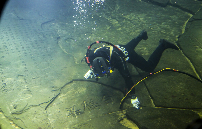 (大文新聞網記者 張蕊)3月15日,重慶涪陵白鶴梁水下博物館迎來了第三次閉館修繕後的首次潛水員水下清理作業。潛水員通過壓力艙,進入水下40多米的白鶴梁題刻無壓容器罩中,重點清理水下燈具和燈罩、參觀廊道的觀察窗口玻璃,以及題刻本體上的泥沙。