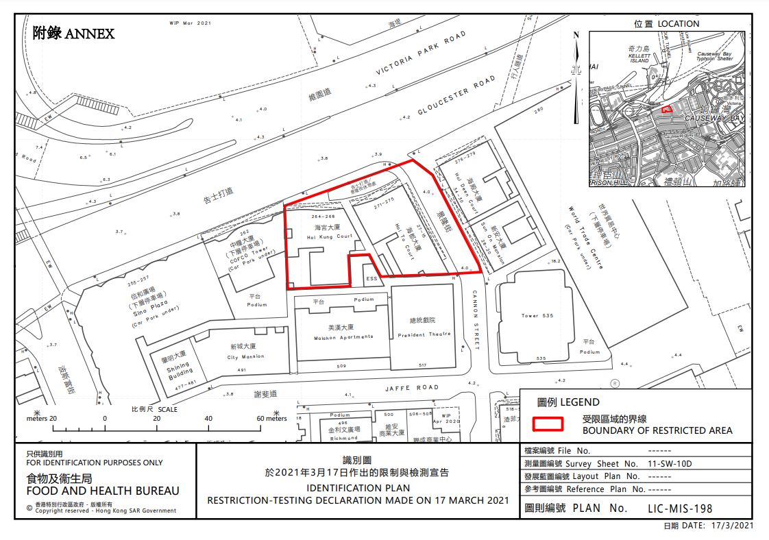 大公文匯全媒體報道,香港特區政府昨晚圍封銅鑼灣海宮大廈和海都大廈,居民須強制檢測。海宮大廈及海都大廈的強制檢測執法行動,在今日(18日)上午約11時結束,當局發現有8人未接受強制檢測,已經向他們發出強制檢測令。另外有約60戶居民無應門,當局已在門口張貼告示,呼籲他們盡快聯絡政府檢測。