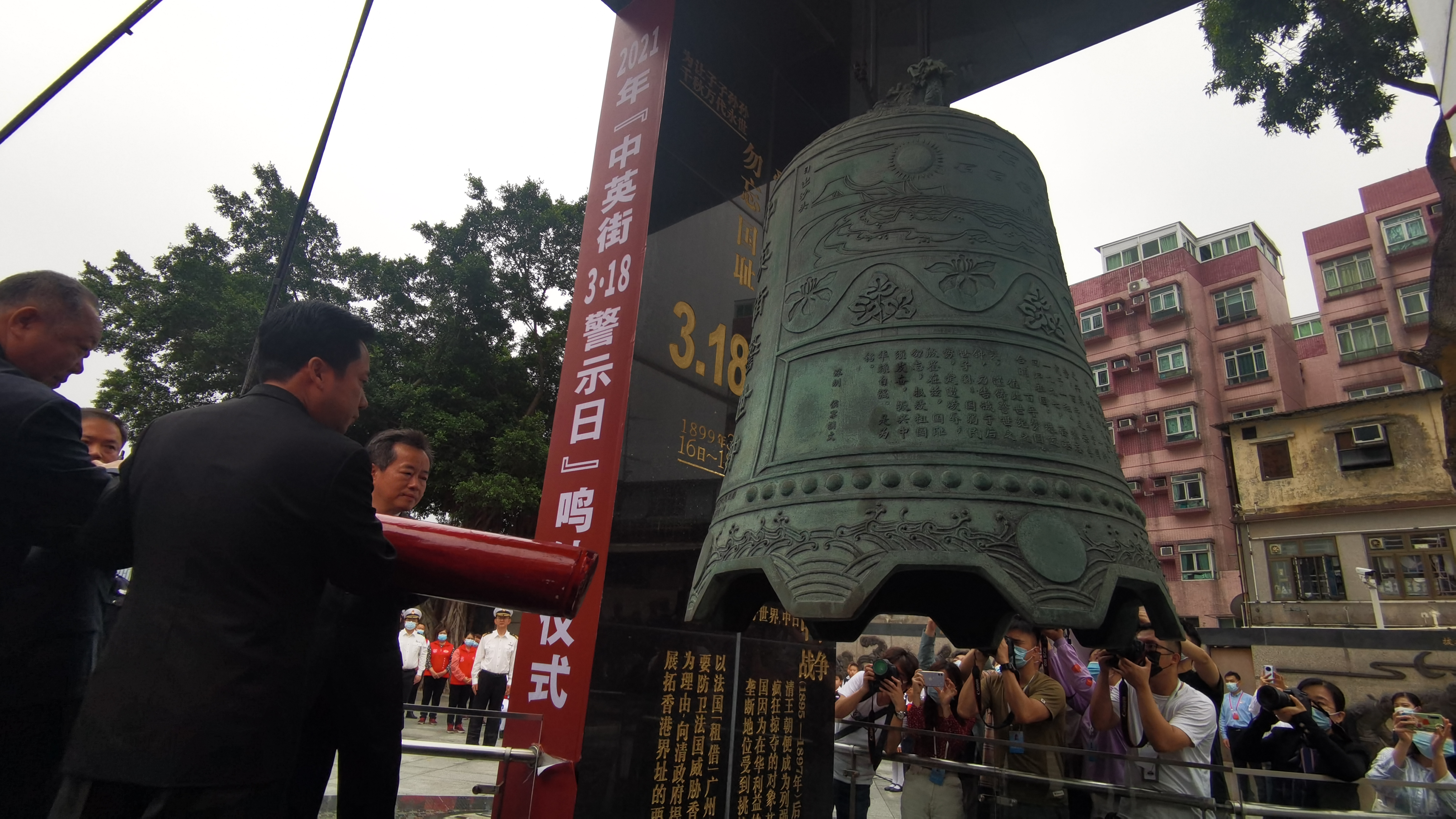 1899年的3月18日,中英雙方完成對「新界」北部邊界的勘定,把沙頭角一分為二,形成了英界沙頭角和華界沙頭角。今年是「中英街3.18警示日」活動舉辦的第二十個年頭。20年來,每年的這一天,中英街1號界碑前的警示鐘亭都會有來自深港兩地愛國人士齊聚一堂,共同參與警示日鳴鐘儀式。