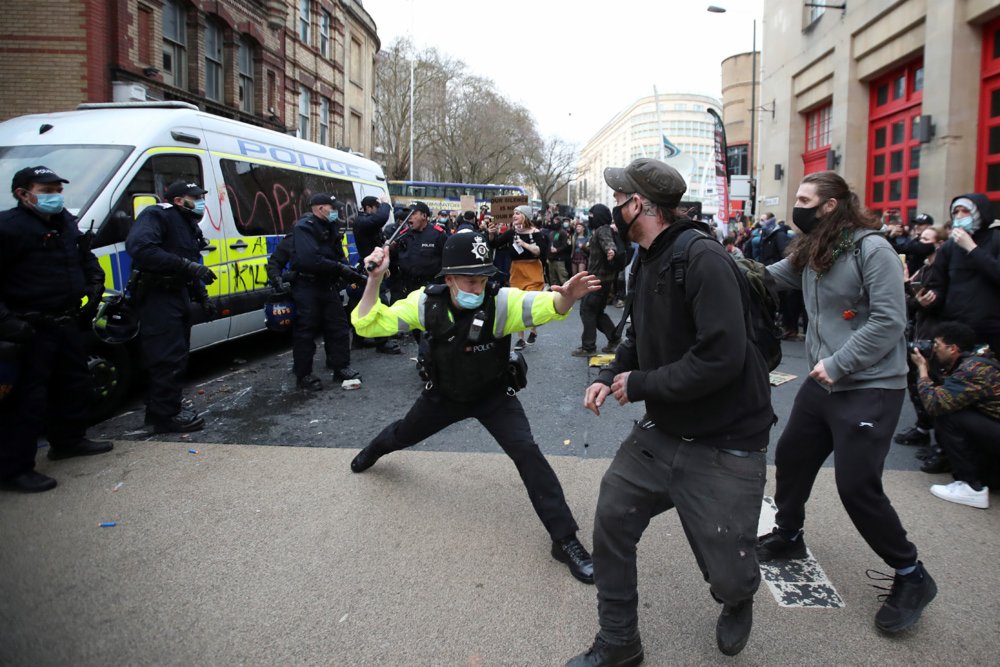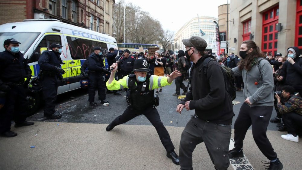 大公報綜合英國BBC、《每日郵報》、美聯社報道:英格蘭西南部城市布里斯托21日發生暴力示威,反對「限制示威法案」的激進分子包圍警察局、襲擊警員並放火焚燒警車,導致至少20名警員受傷。首相約翰遜和內政大臣彭黛玲皆斥情況「不可接受」,英媒也用上「暴動」、「羞恥」等形容詞,更有人怒罵示威者是「一群畜生」。但英國網民發現,在香港修例風波期間,這些政客和傳媒大力稱頌香港暴徒,再度暴露英方「雙標」本質。