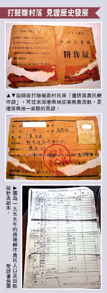 陳月明介紹道,在英人統治時期曾劃分村落邊界,分成耕作和居住兩個部分,以務農為生的村民無以為生,中國政府遂與港英政府簽訂協議,向在新界有耕作活動的22歲以上農民發放「邊防區農民耕作證」,持證者可往來深港兩地從事務農活動。她說,這個證至今仍保留着,亦正好是聯絡深港兩地的見證,這段故事也會在鄉志中提及。