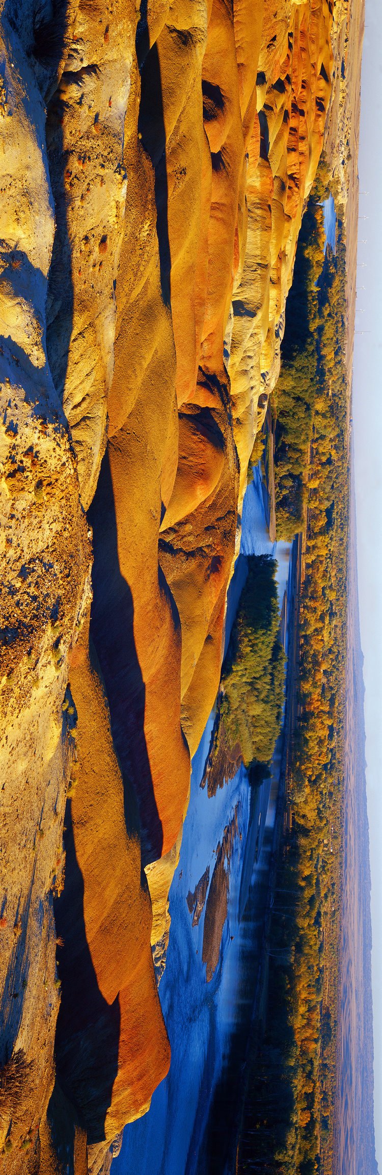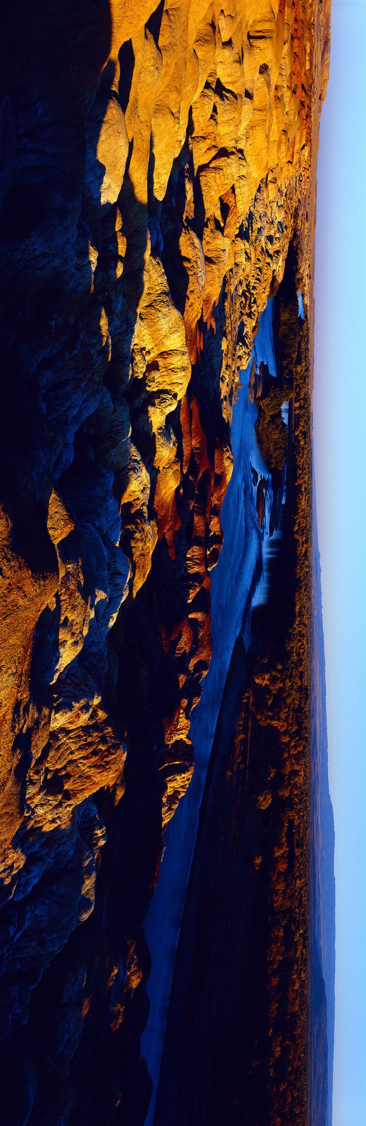 我們穿越天山到布爾津縣之後短暫休整了一下,下午到五彩灘景區拍攝。影友黃建國到門口說你們進去吧,我在車上等你們可以省一張門票。助理程小克背着相機,司機張允峰扛着三腳架跟着我進了景區後,發現五彩灘內遊客很多,攝影人也多。我拿着取景器看了一下,當時色溫已經很好了,依據我現場的判斷,估計太陽落入雲中只有30分鐘左右的時間了,需要趕緊幹活兒!我用測光表精確側光後讓助理程小克迅速把相機架好,「咔嚓、咔嚓、咔嚓、咔嚓」一個景一捲入袋。助理小程負責換膠捲、兼職助理張允峰跟着我換機位,我用取景器取好景,示意張允峰迅速把相機架好,「咔嚓、咔嚓、咔嚓、咔嚓」又是一景一捲,一邊走一邊拍,一邊拍一邊往前移動,一個來回選擇了8個拍攝點,用了10個膠捲,五彩灘拍攝圓滿。