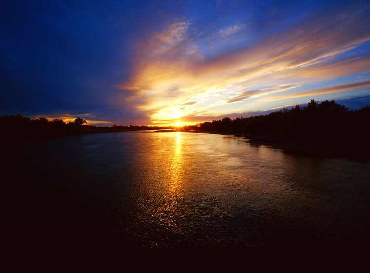 兩個助理抱着相機和三腳架跟隨我迅速離開五彩灘景區,趕往額爾齊斯河邊拍落日。我們從容地來到河邊,把相機支好等待當天的晚霞。太陽從雲層里慢慢地落下去,等太陽完全落山,額爾齊斯河上空一片夕陽紅!額爾齊斯河的落日定格在我們的相機中,又收穫了一組滿意的片子。收工回到布爾津縣城後,我們去逛了當地的夜市,品嘗了當地的小吃。一天下來,拍得爽,吃得好,睡得也香!