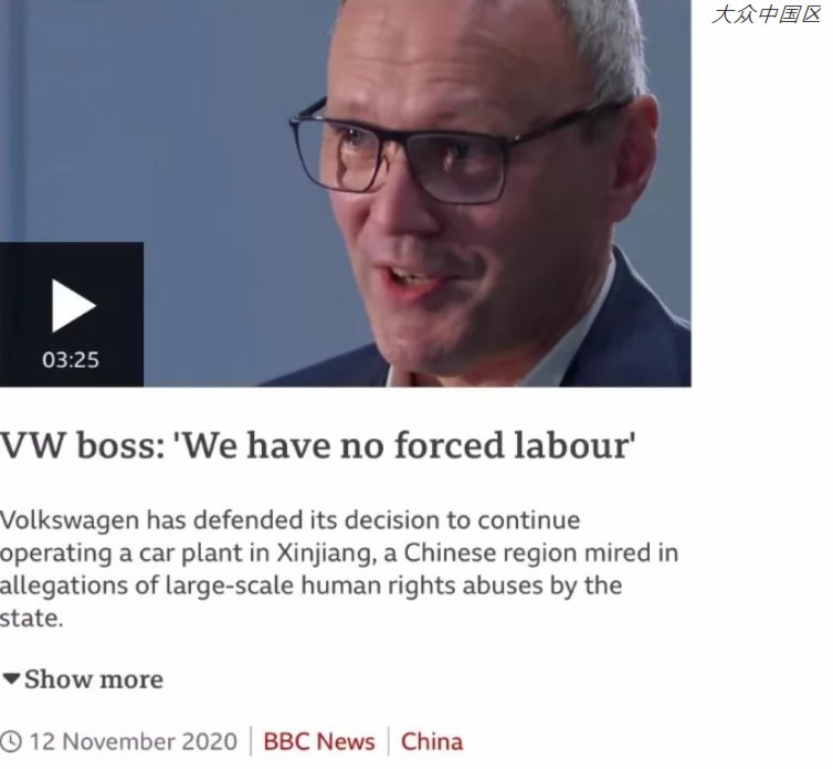 2020年11月,沙磊故技重施,「審訊式」提問大眾公司中國區負責人。在採訪對象表示「我們不存在所謂『強迫勞動』」後,沙磊提出奇葩論點:只要你在新疆有工廠,無論裏頭的工人從哪兒來,都是「幫助」中國政府「迫害」維吾爾族人;沙磊還用「二戰」道德綁架企業,將自由勤勞的維吾爾族工人比作遭受納粹強迫勞動的猶太人,逼問負責人為何仍不撤離新疆。