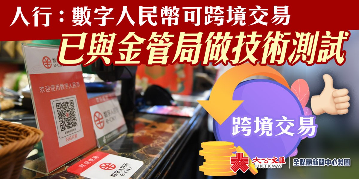(大文新聞網記者 海岩)內地數字人民幣試點正如火如荼展開,中國人民銀行研究局局長王信1日在北京表示,前期,人民幣銀行數字貨幣研究所與香港金管局合作,就數字人民幣在內地和香港地區跨境使用進行了技術測試。