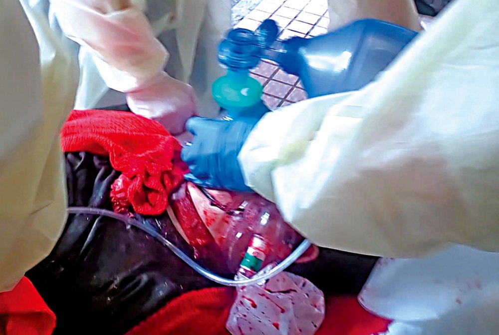 消息稱,事發昨晨8時39分,姓余男戶主在家中突然情緒激動,取出一把約八吋長陶瓷刀,先在廚房殺死其飼養的狗隻,繼而走到房間,向正在熟睡妻子狂斬至少四刀,包括頸部及胸部,妻子浴血昏迷倒卧床上。家中兩名兒子發現後大驚,父親繼而持刀向長子施襲,兒子果斷把刀搶過來及扔在地上,幼子則為母親進行急救,長子見父親走入廚房,欲上前關門時,父親再取出兩把陶瓷刀指向他頸部,長子為免父親再襲擊家人,遂將廚房關上,並用物件堵塞,同時報警。