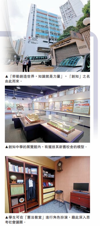 隨着社會的發展,今日的勞校和過去大不相同,十二所分校大多已完成了它們的歷史使命,勞校辦學仍為適應社會的變化而多番轉型。2005年,曾經的「旺角勞工子弟學校」改名為「勞工子弟中學」,再於2018年改名為「創知中學」。校史室中,黃晶榕指着校歌首兩句──「勞動創造世界,知識就是力量」,向記者解說「創知」的由來。他說,無論是勞校還是創知,辦學宗旨都不會改變。學校一直力求為社會、為國家培養出德才兼備的人才,為基層學生提供優質而均等的教育。