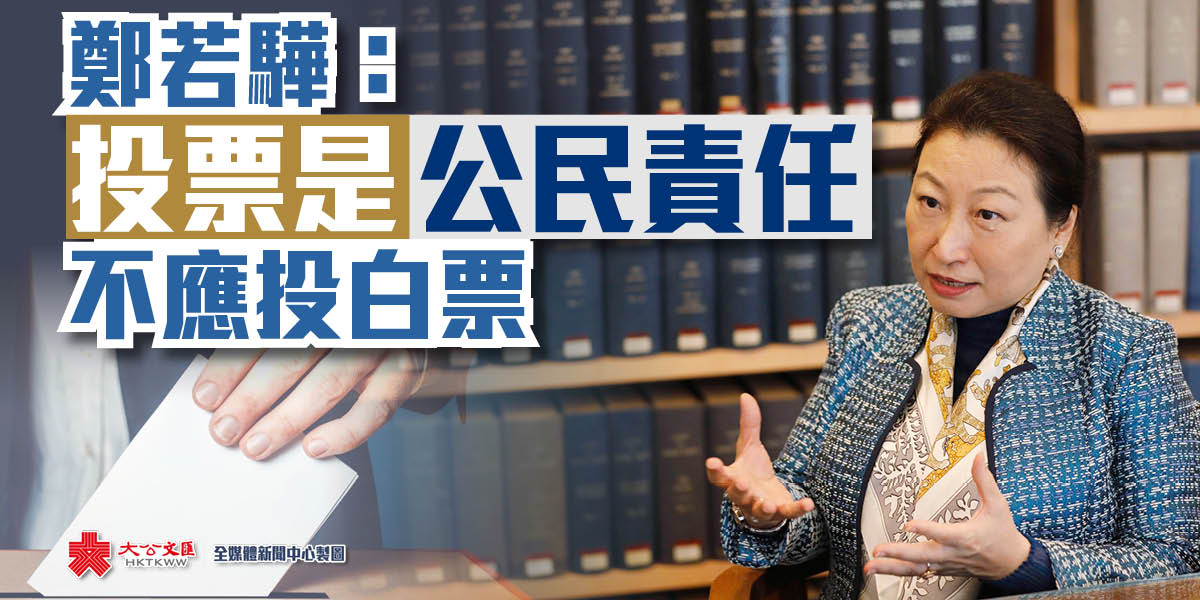 大公文匯全媒體報道,人大常委會上周全票通過修訂基本法附件一及附件二,新列明特區應當採取措施,依法規管操縱、破壞選舉的行為。律政司司長鄭若驊今日(4日)在電視節目中表示,會研究現時對操縱及破壞選舉行為的規管是否足夠,以及如何令選舉公開、公平及誠實地進行。至於投白票是否屬於操縱選舉,她認為不應這樣做,因為投票是公民責任。