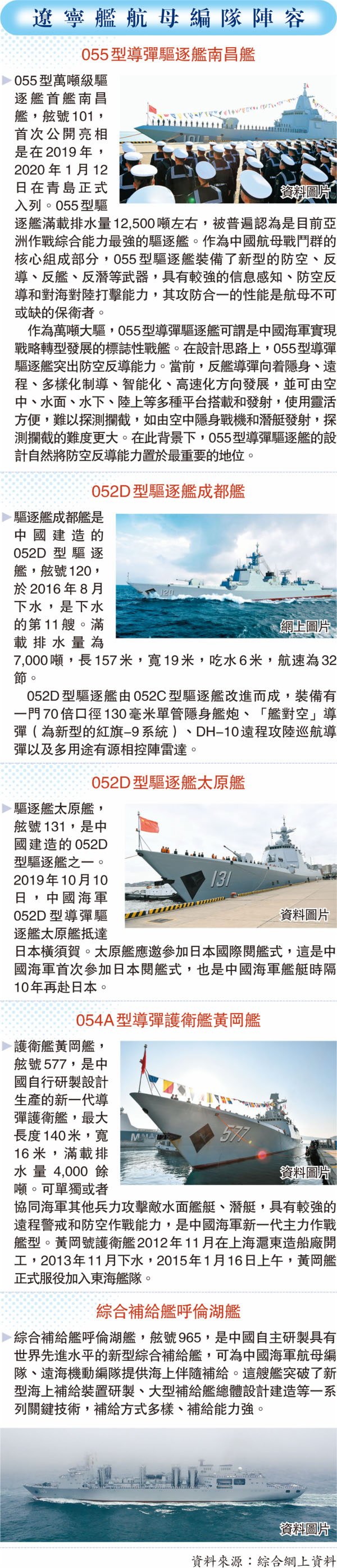 (香港文匯報記者 葛沖 北京報道)遼寧艦航母編隊近日再赴太平洋演練。據日本防衛省統合幕僚監部4月4日發布的信息稱,中國海軍遼寧艦航母等6艘水面艦艇通過沖繩島和宮古島之間的海域駛向太平洋。其中,尤為引人注目的是,055型萬噸級大型導彈驅逐艦南昌艦和901型綜合補給艦呼倫湖艦,首次編入航母編隊通過宮古海峽赴遠洋演練。昨晚,海軍新聞發言人高秀成海軍大校介紹,日前,中國海軍組織遼寧艦航母編隊在台灣周邊海域進行訓練,這是根據年度工作計劃組織的例行性訓練,旨在檢驗部隊訓練成效,有利於提高維護國家主權、安全、發展利益的能力。今後,中國海軍仍將按計劃常態組織類似演訓活動。