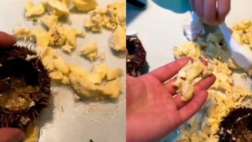 就餐期間,消費者就海膽蒸蛋內沒有海膽只有雞蛋與涉事商家產生爭執。據了解,當季本地海膽汁多肉少,與其他地區口味有所差異,一般採用蒸蛋的方式供客人食用。為證明當季海膽情況,糾紛發生時,涉事商家現場宰殺了一隻海膽供消費者查實。民警介入協調後,商店免除了消費者消費海膽的費用,消費者實際支付2427.6元。