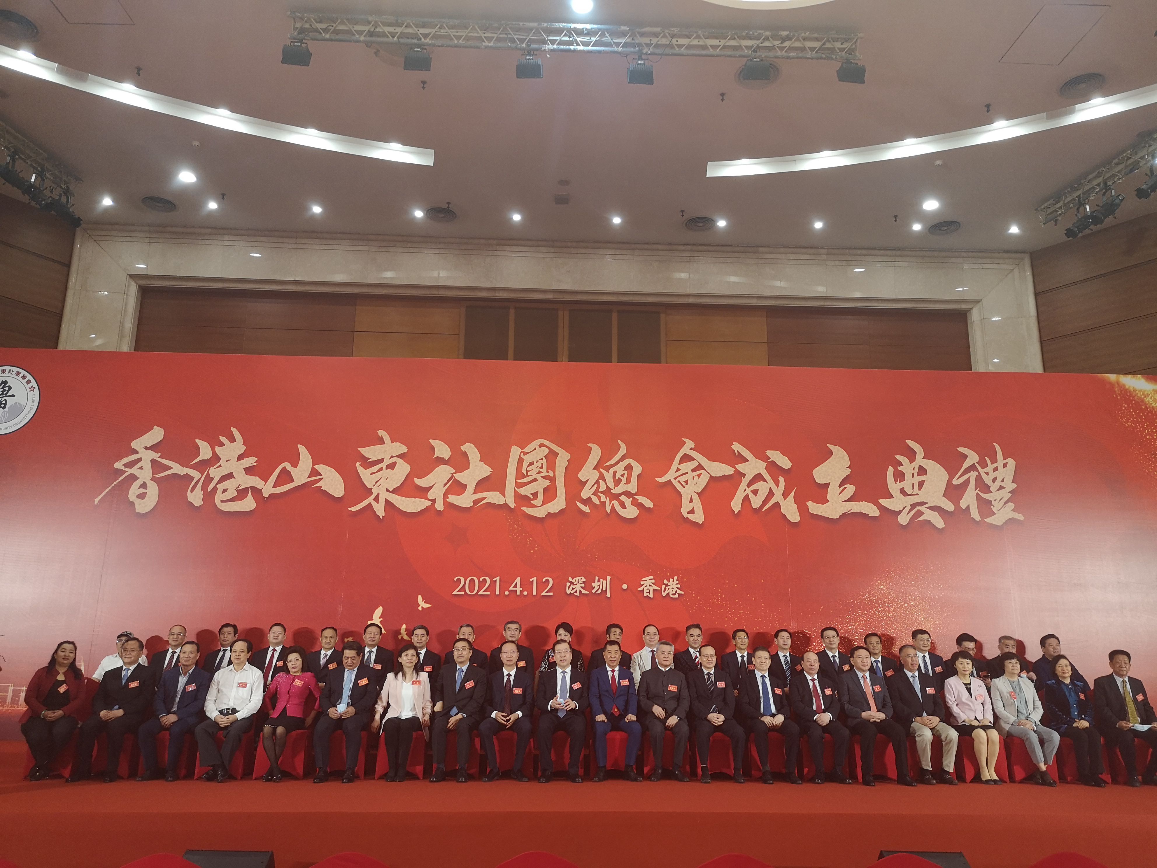 山東省委統戰部部長張江汀率全省16地市的統戰部部長在深圳會場出席,香港特區行政長官林鄭月娥、香港中聯辦副主任何靖、政務司司長張建宗、政制及內地事務局局長曾國衞、民政事務局局長徐英偉等為總會成立題寫賀詞。