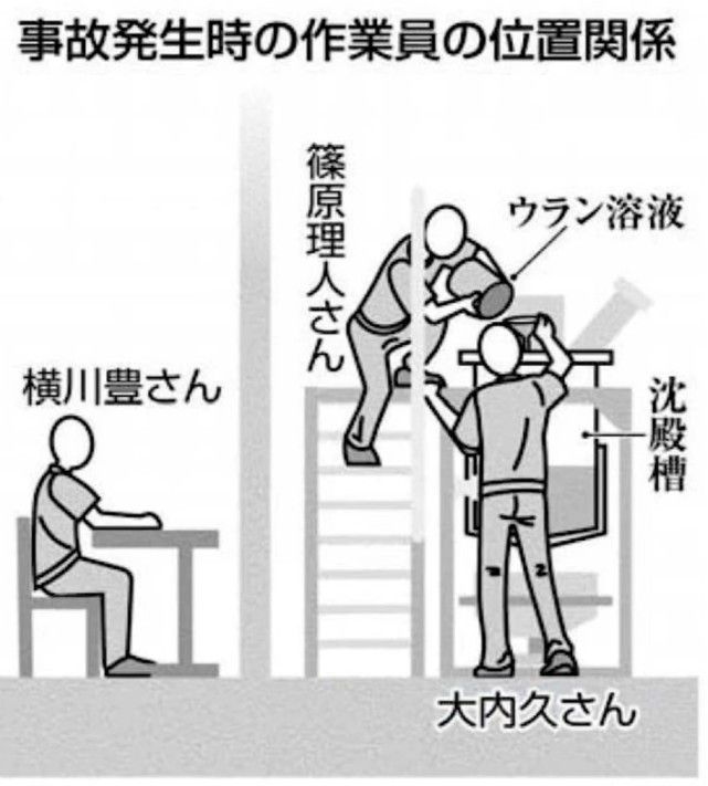 該事件發生在1999年9月,是2011年日本福島核洩漏事故前所發生的一次重大核洩漏,當時日本東海村核燃料加工廠中三名工人正在對鈾進行提純操作,按照正常的操作,本該通過泵將鈾的硝酸鹽溶液逐漸送入沉澱槽進行反應。然而為了圖方便,他們將容器中高濃度的含鈾溶液直接傾倒入沉澱槽中,在這個操作過程中,其中一名工人進行傾倒,另一名工人用手扶着下面的漏鬥,第三名工人在距離沉澱槽幾米處的辦公桌旁工作。