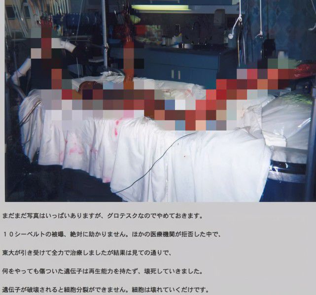 在之後的一周治療內,大內久全身開始浮腫,醫生對大內久的細胞染色體進行檢測,發現細胞內部染色體幾乎全部發生斷裂,這個時候,醫生們才弄清楚這個情況是有多麼的嚴重,想要治好幾乎希望渺茫,但畢竟這是一個史無前例的病症,醫生們還是準備想盡一切辦法拯救大內久的生命。
