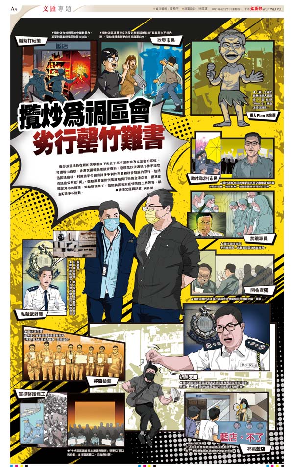 (香港文匯報記者 黃書蘭)攬炒派區議員在新的選舉制度下失去了原有選委會及立法會的席位,可謂咎由自取。香港文匯報記者翻查資料,發現攬炒派通過下作手段攻佔區議會後,利用該平台做出諸多不利於市民和社會發展的惡行,包括在議會公然宣「獨」、煽動黑暴在修例風波期間打砸燒全港店舖,拒為愛國愛港市民服務,煽動醫護罷工,阻撓特區政府疫情防控工作等等,禍港劣跡多不勝數。