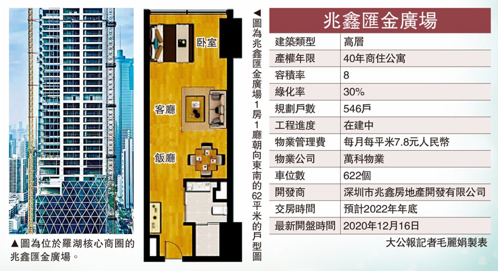 現場銷售朱先生介紹,兆鑫匯金廣場是羅湖國際免稅區首發之作,商業部分體量巨大,由於周邊商貿繁華、人流聚集,目前51平米的公寓租金每月可以達到1.3萬元,具較好的租金回報率。
